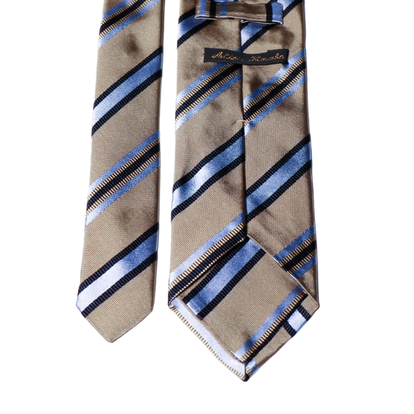 Unsere 3-Fold-Krawatte aus 100% reiner Seide vereint klassische Eleganz mit der faszinierenden Geschichte der gestreiften Krawatten. Das hochwertige Seidenmaterial und das traditionelle Streifenmuster machen sie zu einem perfekten Accessoire für Männer mit Sinn für Stil und Substanz. Ein zeitloses Stück – ideal für jene, die nicht nur Wert auf Stil, sondern auch auf Geschichte legen.