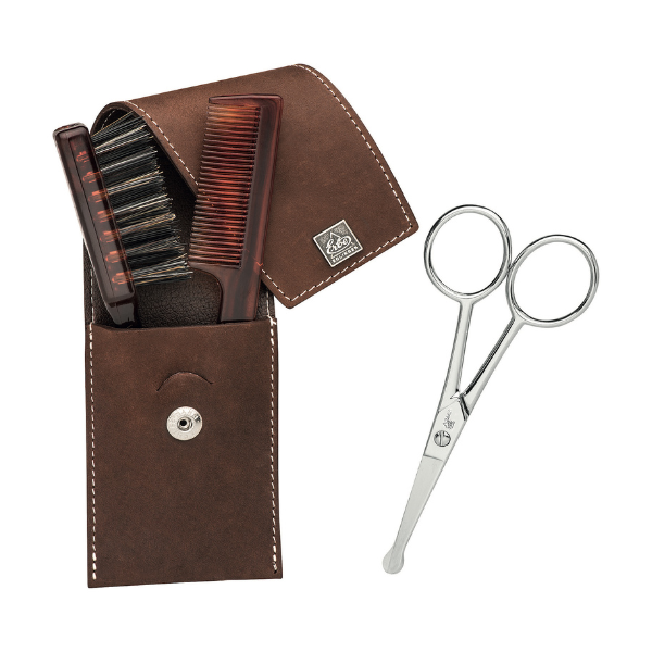 Inhalt: 1x Kamm/ 1x Bürste/ 1x Bart- und Nasenhaarschere/ 1x Leder Etui
