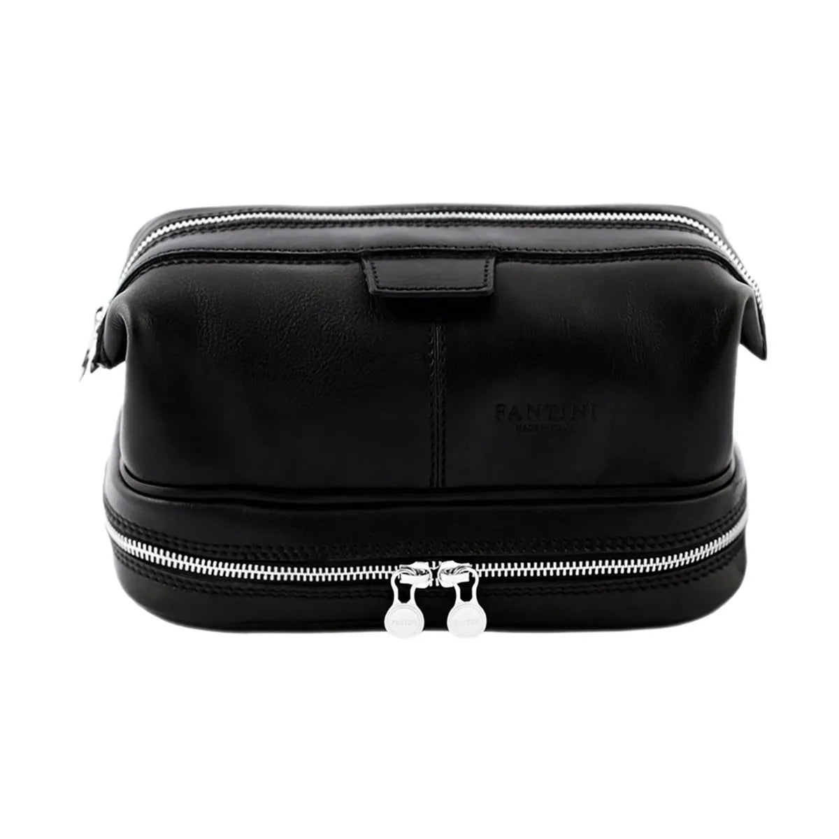 Diese Beauty-Casa bietet nicht nur ein geräumiges Hauptfach, sondern verfügt auch über einen doppelten Boden mit einem weiteren Metallreißverschluss. Elastische Bänder im Inneren ermöglichen eine effiziente Organisation und Ordnung kleinerer Gegenstände. Das Innere ist mit Baumwolle ausgekleidet und ziert das geprägte Fantini-Logo.