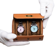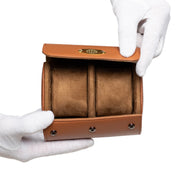 This GTP 2-Way watch roll is designed to fit two watches in it's stunning Cognac Brown. All cushions use an easy snap button system which makes it effortless to store your watch in the roll. The 2-Way watch roll is a perfect tool to showcase and protect your beloved watches in an elegant way.