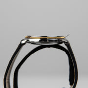 Diese Uhr ist nicht nur ein Accessoire, sondern eine stilvolle Aussage für besondere Anlässe und den Alltag gleichermaßen. Die 18k Goldlünette ist in feinstem Zustand, ohne erkennbare Gebrauchsspuren auf der empfindlichen Oberfläche. Der Gesamtzustand der Uhr ist äußerst gut, und sie wird mit der originalen Box geliefert.