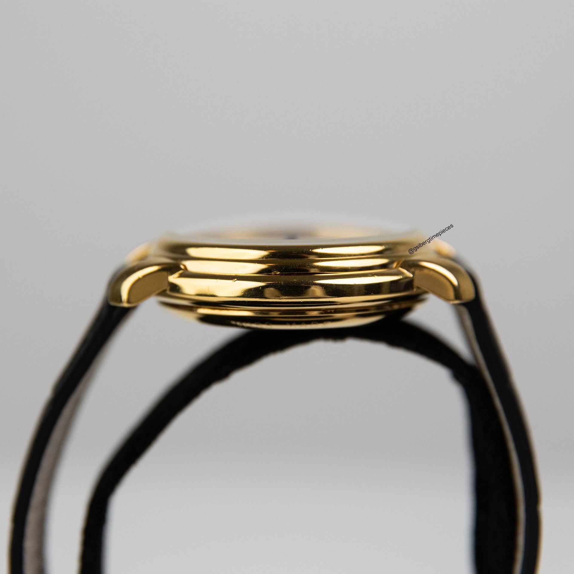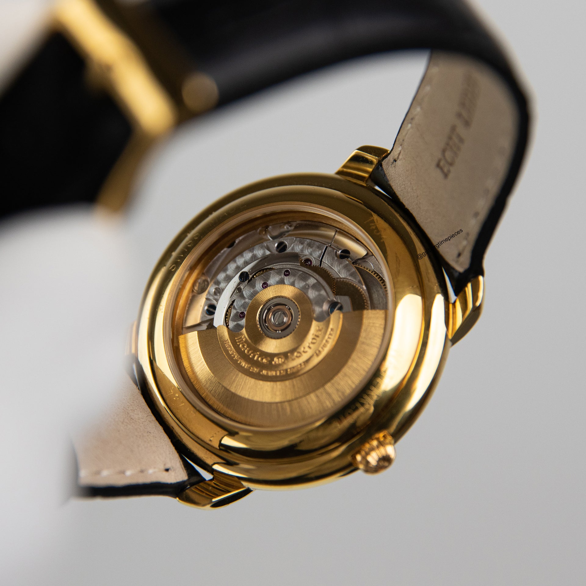 Das vergoldete Gehäuse verleiht der Uhr eine zusätzliche Dimension von Luxus und Eleganz. Mit einem Durchmesser von 38 mm ist die Größe der Uhr perfekt ausbalanciert – nicht zu groß und nicht zu klein. Von meinem Standpunkt aus betrachtet, ist sie schlichtweg ein edles Prachtstück, das jeden Handgelenk schmückt.