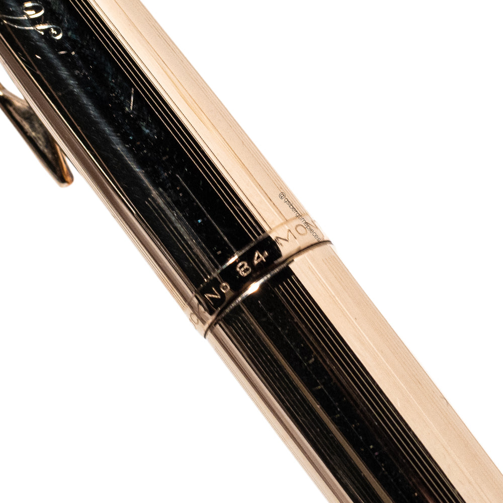 Geboren in den 1960er Jahren, spiegelt dieser edle Füllfederhalter die goldene Ära des Schreibens wider. Sein Körper, in warmem Gold getaucht, strahlt einen Hauch von Luxus aus, der die Augen fasziniert und die Sinne betört.