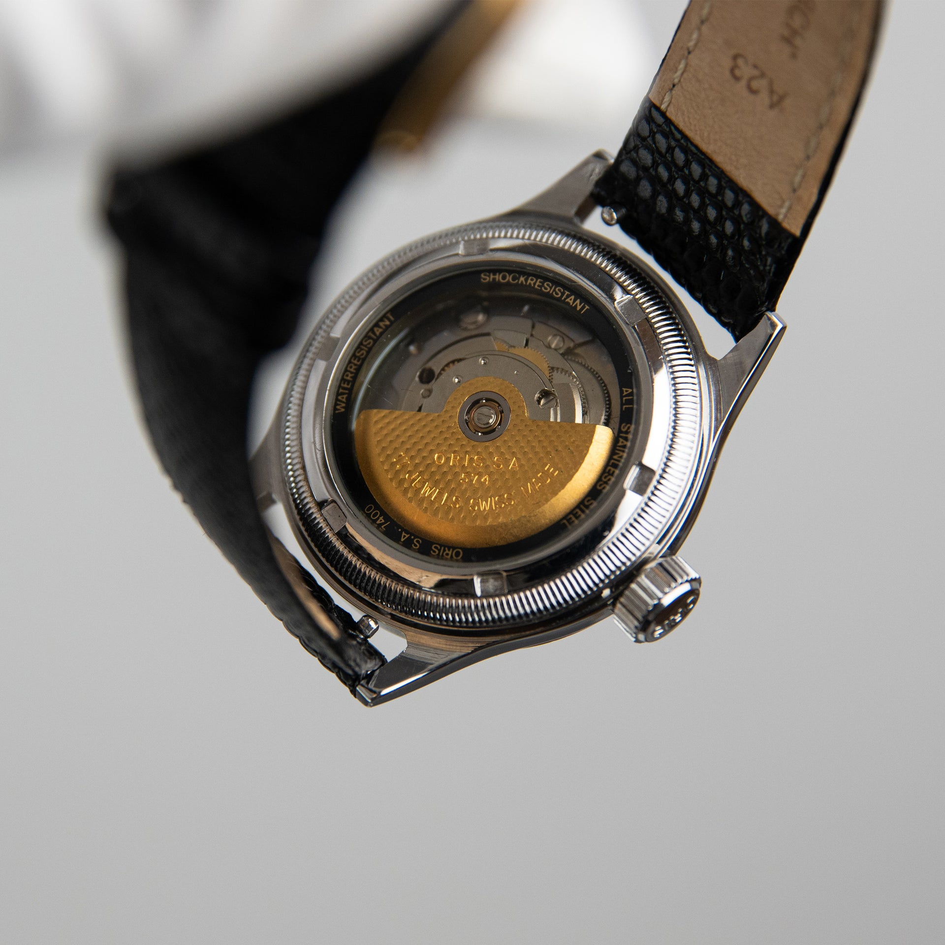 Oris S.A. 574 Automatik Uhrwerk: Das Uhrwerk, das auf dem Oris S.A. 574 basiert, verleiht der Uhr nicht nur eine zuverlässige Zeitmessung, sondern trägt auch zur Tradition und Handwerkskunst von Oris bei. Automatikuhren sind bekannt für ihre Selbstaufladefunktion durch die Bewegung des Handgelenks.